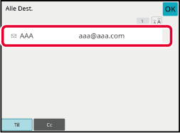 Læg originalen i den automatiske dokumentfeeder eller på glaspladen.Angiv alle destinationer.
