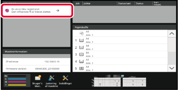 Meddelelsen om virusdetektion vises i "Besked" på skærmen Maskinstatus. |