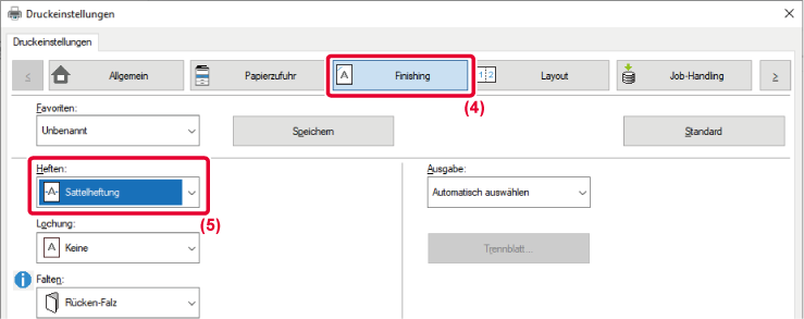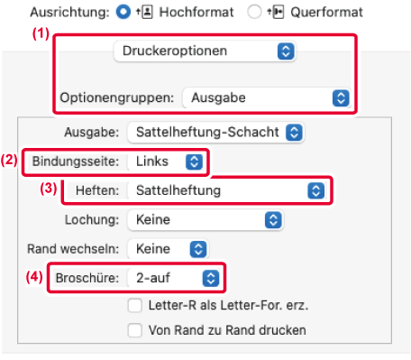 - Wählen Sie unter "Heften" die Option [Sattelheftung] aus.