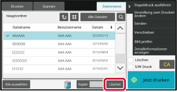 Überprüfen Sie die Datei und berühren Sie dann die Taste [Löschen].