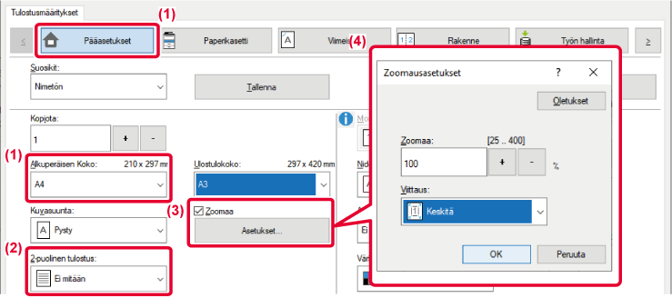 - valitse [Zoomaa]-valintaruutu ja napsauta [Asetukset]-painiketta.