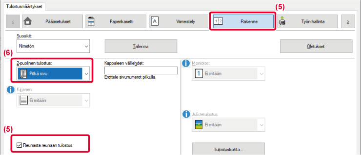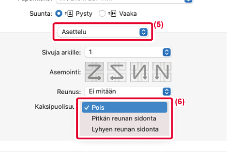 - Valitse [Ei mitään], [Pitkä reuna] tai [Lyhyt reuna] 2-puolisessa