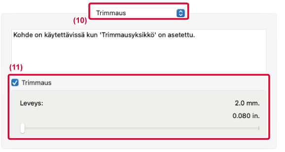 - Valitse [Trimmaus]-valintaruutu, määritä ”5,0 mm (0,200
