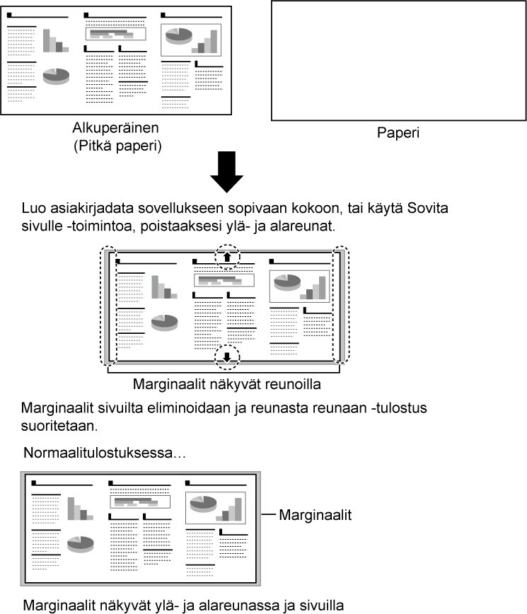Tämän toiminnon avulla voi tulostaa ilman ylä- ja alareunoja.