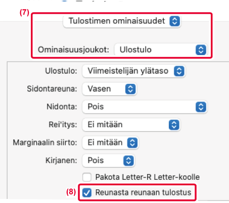 macOS 13, [Rajaus] löytyy "Tulostinvaihtoehto"-valikosta.