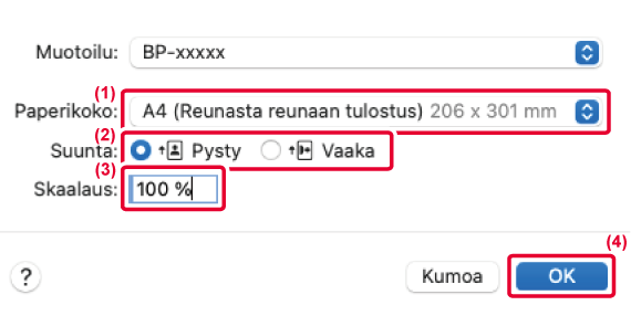 Valitse "A4 (Edge-to-Edge Printing)" tai "A5 (Edge-to-Edge