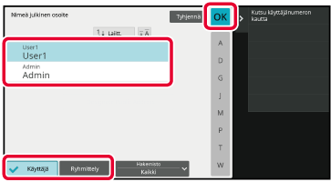 "Yhteyshenk." ja "Ryhmittely" ovat vain käyttäjän käytettävissä. Rekisteröidyt osoitteet näytetään ensisijaisesti kohdassa "Omat yhteyshenkilöt" käyttäjän osoitekirjassa. |