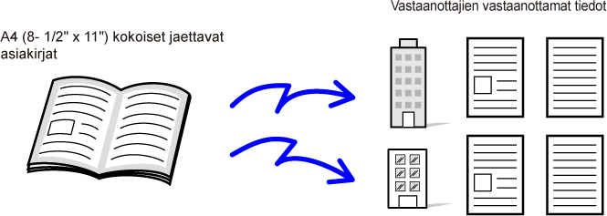 Syötä kunkin sivukonttorin osoite. ![]() Valitse 2 sivun skannaus. ![]() Määritä häivytys. ![]() Napauta [Aloita]-näppäintä. Skannaa ja lähetä alkuperäinen. |