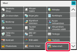 ), tiedot lähetetään ilman salausta.Kosketa [Muut]-näppäintä ja sitten [Salaa email.]-näppäintä.