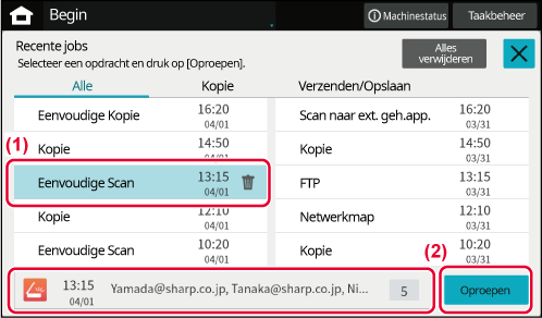 Tap this key to display a list of recently used jobs.