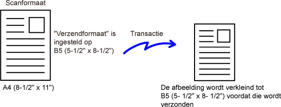 B5 (5-1/2" x 8-1/2"), dan wordt het beeld vóór verzending verkleind.