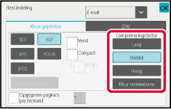 *1 Als PDF (inclusief versleuteling en hoge compressie) is geselecteerd voor de bestandsindeling, kan de bestandsgrootte verkleind worden met flate-compressie.