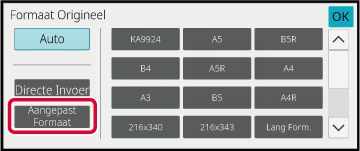 Nadat u de toets van het origineelformaat hebt geselecteerd, tikt u op de toets