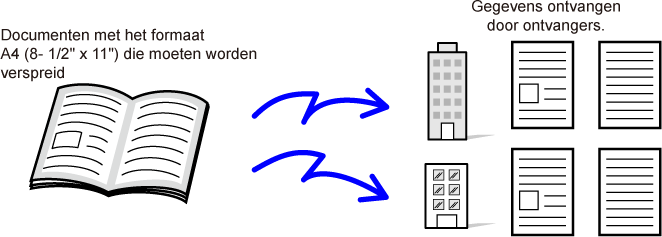 Voer het adres van elk filiaal in. ![]() Selecteer Dubbele Pg Scannen. ![]() Geef Wissen op. ![]() Tik op de toets [Start]. Scan en verzend het origineel. |