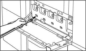 Dra rengjøringsverktøyet ut til du kjenner at tuppen av verktøyet fjerner seg fra rengjøringsoverflaten på laserenheten.