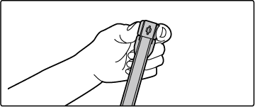 Ta godt tak i verktøyet der renseren er festet mens du bruker den andre hånden til å trykke ned kroken som renseren er festet i, og fjern renseren.