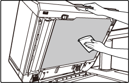 Åpne den automatiske dokumentmateren, og ta ut rengjøringsmiddelet for glass.