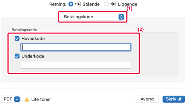 Du kan angi en betalingskode ved å bruke maskinens skriver.