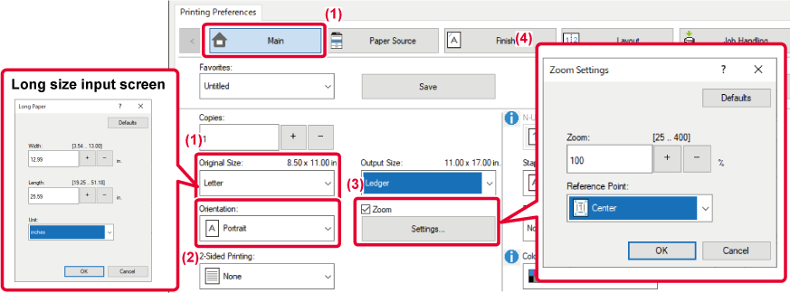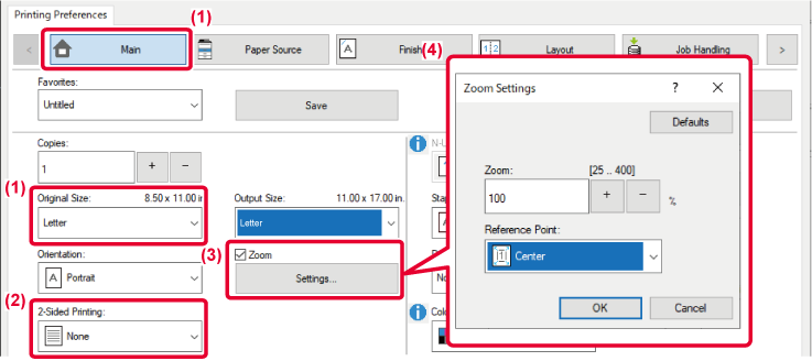 - Select [None], [Long Edge] or [Short Edge] in 2-Sided Printing.