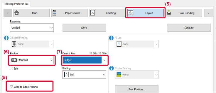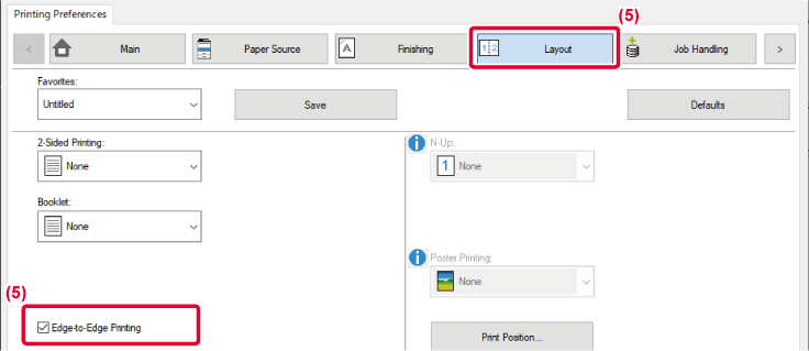 - Click the [Layout] tab and check the [Edge-to-Edge Printing]