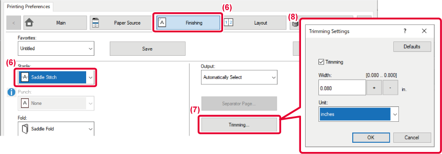- Check the [Trimming] checkbox, specify "0.200 inches (5.0