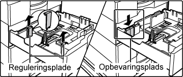 - Når papirstørrelse 8-1/2" x 11" skal indstilles i bakke 2 til 4, skal de 2 reguleringsplader