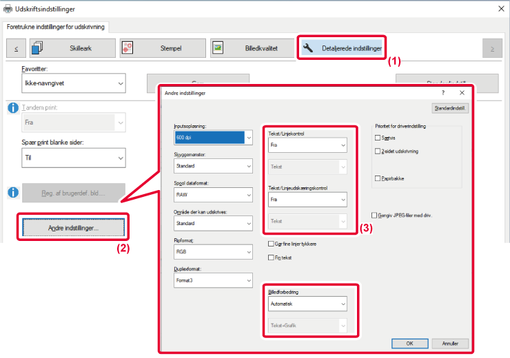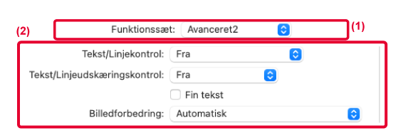 Du kan gøre kanter på tekst og grafik blødere eller skarpere. Automatisk: Udfører optimal billedforbedring. Fra: Der anvendes ingen billedforbedring. Skarp: Billedforbedring anvendes skarpt. Svag: Billedforbedring anvendes svagt. |