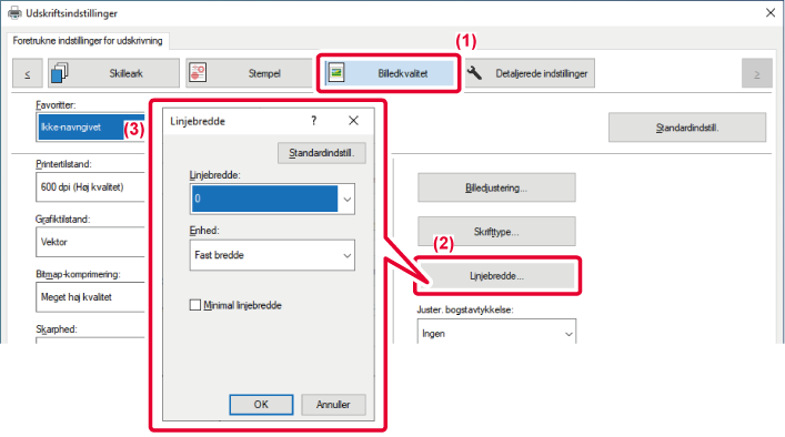 Denne funktion øger tykkelsen af hele linjen, når udskriftslinjerne ikke er tydelige