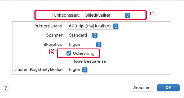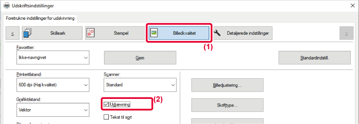 UDSKRIVNING MED EN FORBEDRET OPLØSNING (UDJÆVNING)