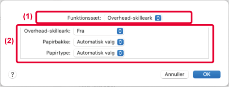 - Vælg [Overhead-skilleark], og klik på knappen [Indstillinger].