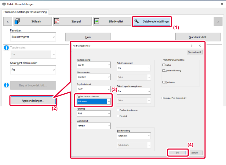 ÆNDRING AF GENGIVELSESMETODEN OG UDSKRIVNING AF JPEG-BILLEDER (BRUG DRIVER TIL AT
