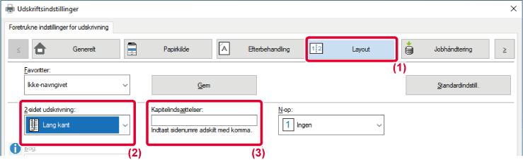 TOSIDET UDSKRIVNING MED UDVALGTE SIDER, DER UDSKRIVES PÅ FORSIDEN (KAPITELINDSÆTTELSER)