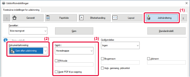 - [Dokumentarkivering] som kan indstilles på fanen [Jobhåndtering], kan også indstilles