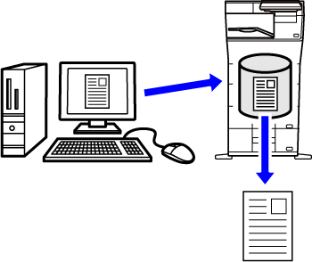 Denne funktion gemmer et udskrivningsjob som en fil på maskinens lokale drev, hvilket