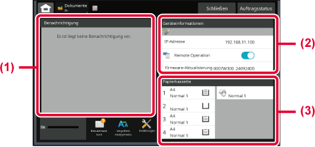 Es werden Format, Typ und verbleibende Papiermenge im Gerät angezeigt. Berühren Sie