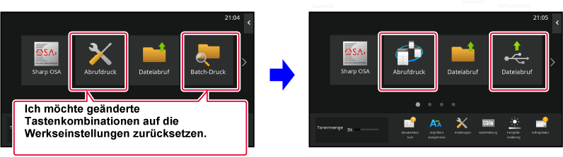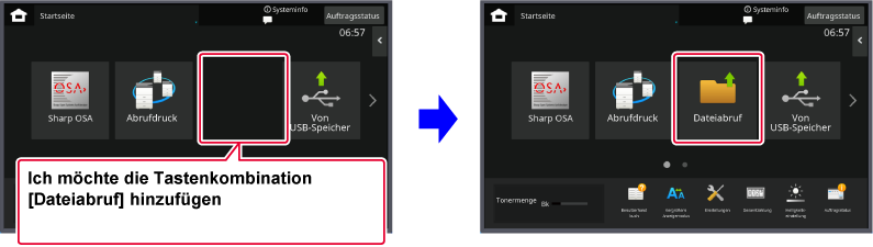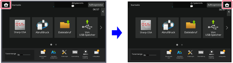 Die Einstellungen werden im Gerät gespeichert und angewandt.Dieser Abschnitt erläutert das Verschieben einer Schnellzugriffstaste auf der Startseite.