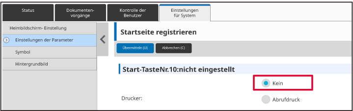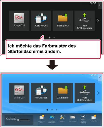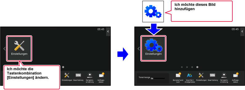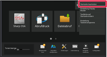 Die Einstellungen werden im Gerät gespeichert und angewandt.Dieser Abschnitt erläutert das Ändern einer Schnellzugriffstaste auf der Startseite.