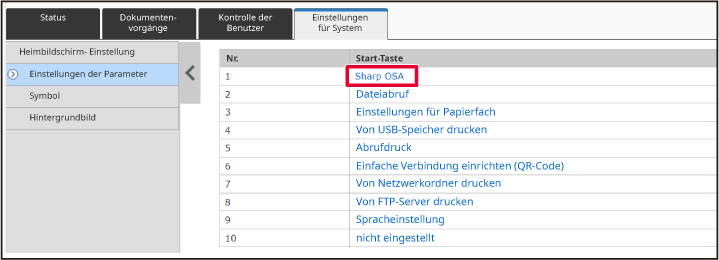 Klicken Sie auf [Einstellungen der Parameter] und dann auf die Schnellzugriffstaste, die Sie ändern möchten.