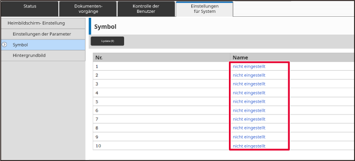 Über das Touch-Panel kann nur der Name geändert werden. Das Miniaturbild des Symbols