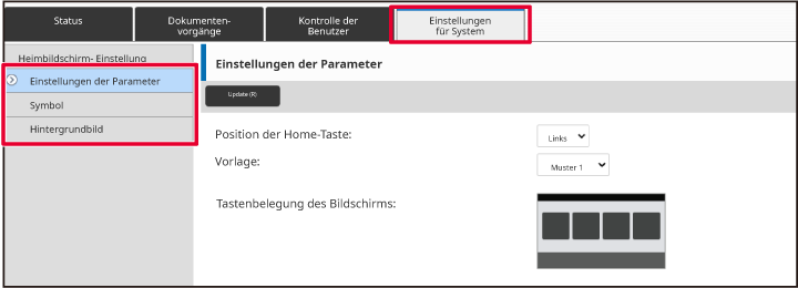 Für manche Einstellungen ist es ggf. erforderlich, Ihr Benutzerpasswort einzugeben, nachdem Sie auf [Heimbildschirm Einstellung] geklickt haben. Wenn Sie keine Benutzerauthentifizierung ausgeführt haben, müssen Sie das Administratorenpasswort eingeben.