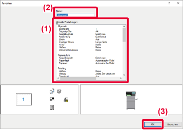 Die zum Druckzeitpunkt auf den einzelnen Registerkarten konfigurierten Einstellungen