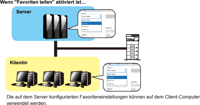 Sie können die gespeicherten Favoriten mit nur einem Klick aufrufen, um beim Drucken
