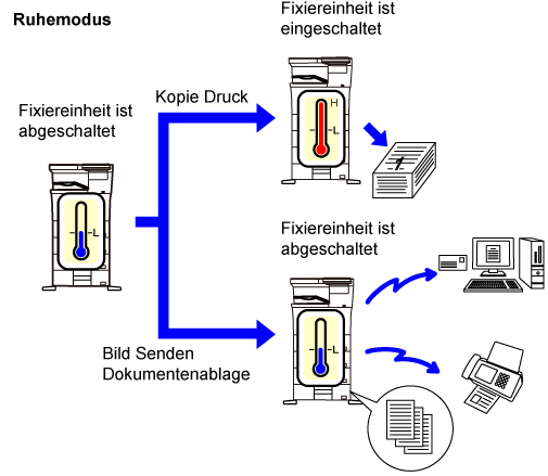 Aufträge, die keinen Druck erfordern, werden bei ausgeschalteter Fixiereinheit ausgeführt.