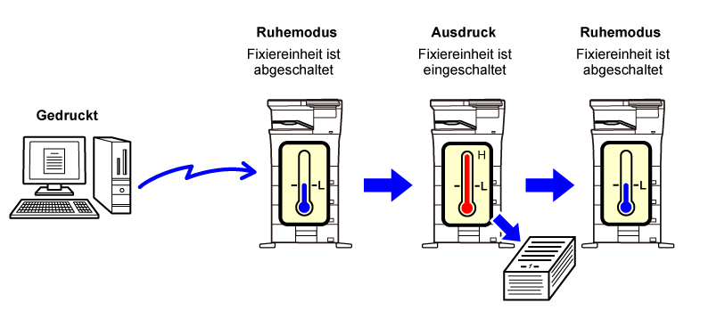 In diesem Modus wird die Temperatur der Fixiereinheit herabgesetzt, und das Gerät