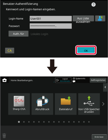 Wenn der Administrator des Geräts die Benutzerauthentifizierung aktiviert hat, müssen