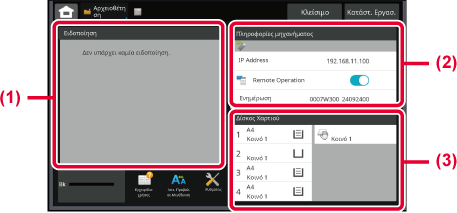 Θα εμφανιστεί η κατάσταση του μηχανήματος, όπως η κατάσταση σύνδεσης στο δίκτυο και