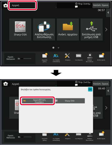 Αλλαγή λειτουργίας από την Αρχική οθόνη