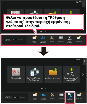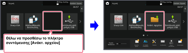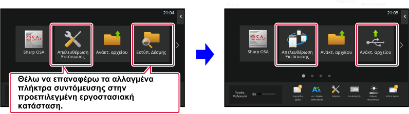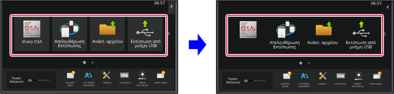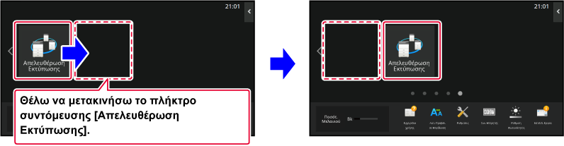 Οι ρυθμίσεις θα αποθηκευτούν στο μηχάνημα και θα εφαρμοστούν.Αυτή η ενότητα εξηγεί πώς μπορείτε να μετακινήσετε ένα πλήκτρο συντόμευσης στην αρχική