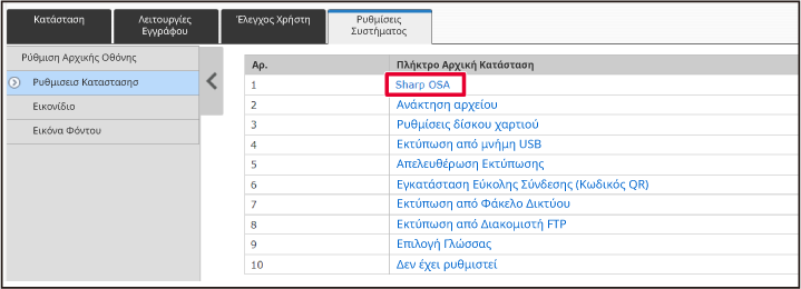 Πατήστε [Ρυθμίσεις Συστήματος] → [Ρύθμιση Αρχικής Οθόνης] και ύστερα πατήστε το πλήκτρο [Θέση αρχικού πλήκτρου].