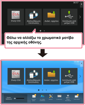 Πατήστε [Ρυθμίσεις Συστήματος] → [Ρύθμιση Αρχικής Οθόνης] → [Εικόνα Φόντου] και ύστερα πατήστε το πλήκτρο [Αλλαγή].